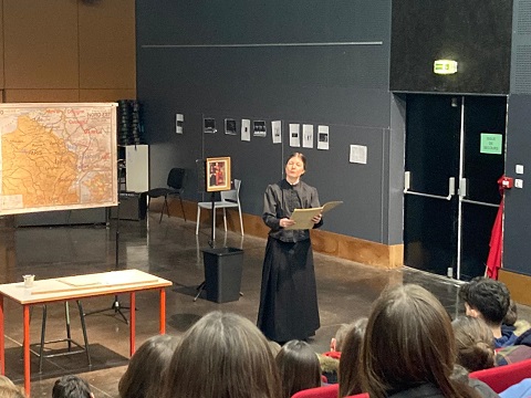 La comédienne Emilie Paillard incarne avec un réalisme incroyable le personnage en reprenant les textes de Louise Michel elle-même. Les enseignants et les élèves ont été vraiment impressionnés par cette présentation, au plus près du public, qui met à l'honneur cette femme courageuse qui défendait des causes toujours d'actualité.