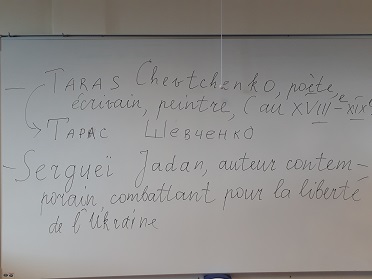 A son tour, Irina a présenté des auteurs ukrainiens, dont le plus célèbre, Taras Chevtchenko, poète, écrivain et peintre du 19e siècle, dont elle a lu quelques vers. Une rencontre pleine d’émotion pour cette professeure très contente de rencontrer des élèves en présentiel et désireuse de garder le lien avec ses étudiants malgré la guerre.